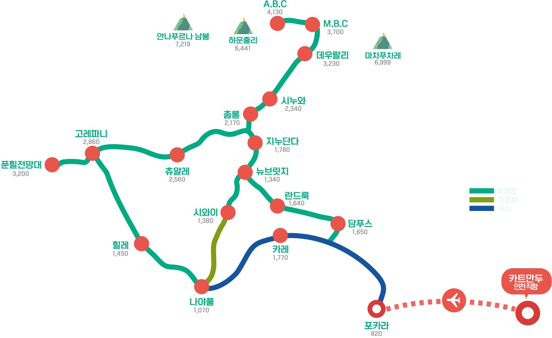 히말라야 산군이 황금빛으로 물드는 장엄한 일출을 가장 가까이에서 마주하는 곳입니다. 안나푸르나와 다울라기리 봉우리가 끝없이 이어지는 파노라마는 여행자에게 평생 잊지 못할 감동을 선사합니다. 새벽을 깨우며 오르는 이 길은, 히말라야의 진짜 얼굴을 보여주는 특별한 여정의 하이라이트입니다.