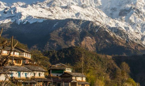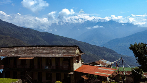 넓은 능선 위에서 안나푸르나와 마차푸차레가 첫 모습을 드러내는 고요한 산촌입니다. 트레킹의 시작에 만나는 이 평온한 전망은, 히말라야 여정의 설렘을 한층 더 깊게 만들어 줍니다.