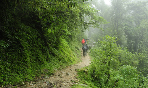철쭉과 전나무가 가득한 숲길 사이로 아침 안개가 흘러가며 몽환적인 풍경을 만들어 냅니다. 아침 햇살에 설산이 천천히 드러나는 순간은 히말라야 트레킹의 숨은 백미입니다.