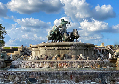 북유럽 신화 속 여신 ‘게피온’이 황소를 끌어 농지를 얻었다는 전설을 형상화한 작품으로, 웅장한 조각과 물줄기가 어우러져 도시의 경관을 더욱 장엄하게 만들어 줍니다. 코펜하겐 여행의 시작을 알리는 상징 같은 장소입니다.