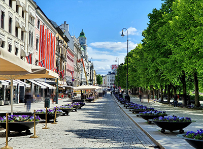 상점·카페·문화시설이 모여 있는 중심 거리. 노르웨이의 일상이 가장 잘 보이는 곳 꽃길과 카페, 상점, 길거리 공연이 자연스럽게 이어지는 오슬로의 메인 산책로입니다. 현지인들의 여유로운 일상이 흐르고, 왕궁과 시청 등 주요 건축물이 이어져 있어 북유럽 도시 감성을 느끼기에 가장 좋은 공간입니다.